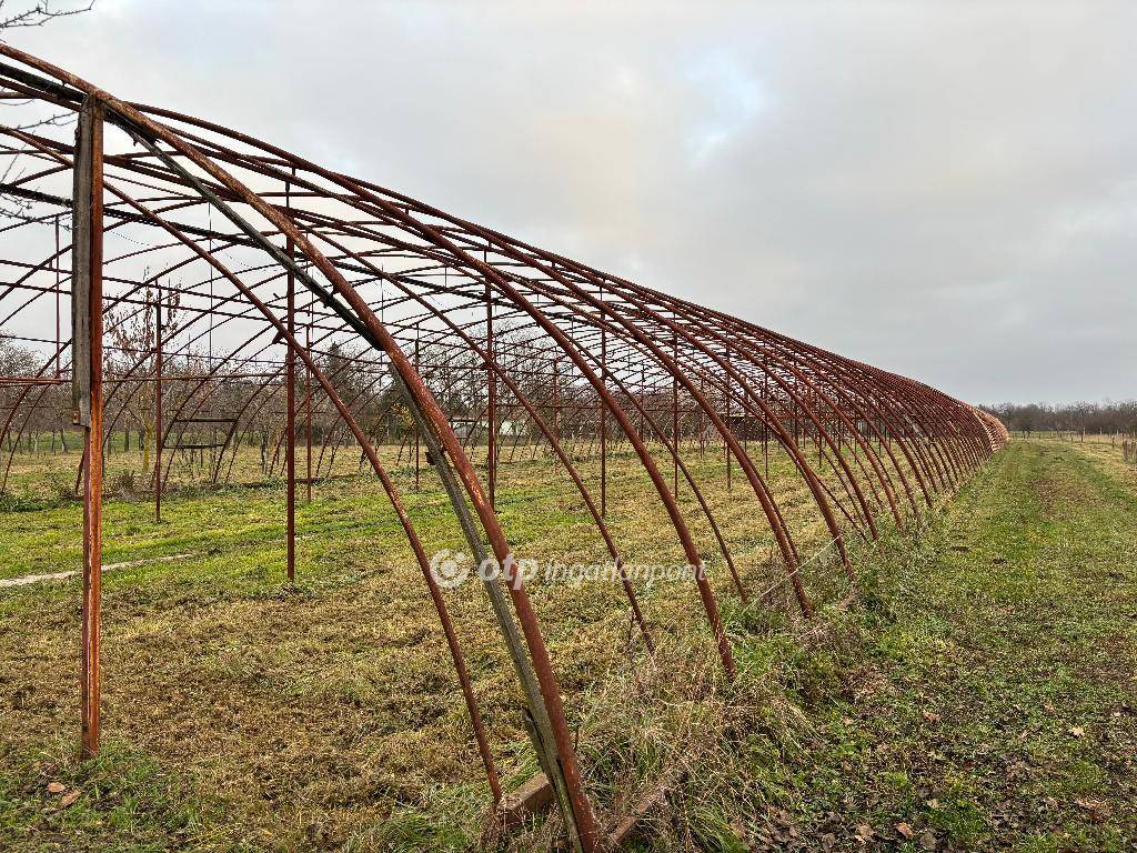 A területen több gazdasági épület, valamint egy masszív, betonba rögzített 80 méter hosszú és 15 méter széles fóliaváz található. Az ingatlan ipari árammal (220V és 380V) ellátott, a vízellátás pedig fúrt kútból biztosított, az öntözést az Élővíz-csatorna közelsége is segíti.