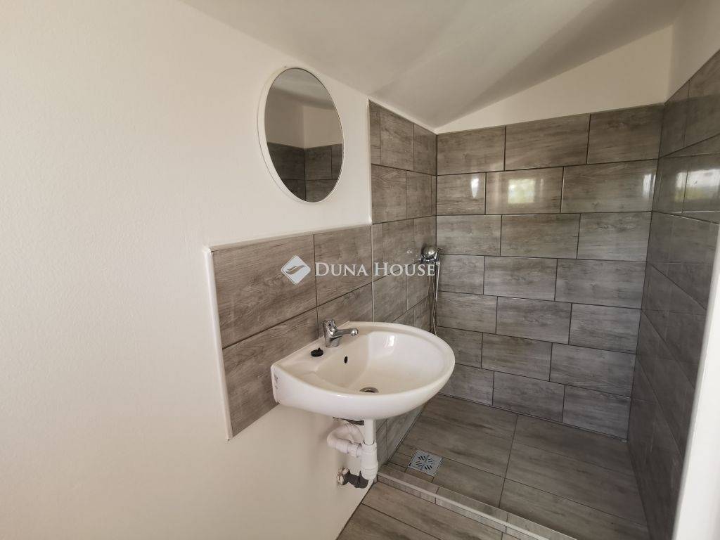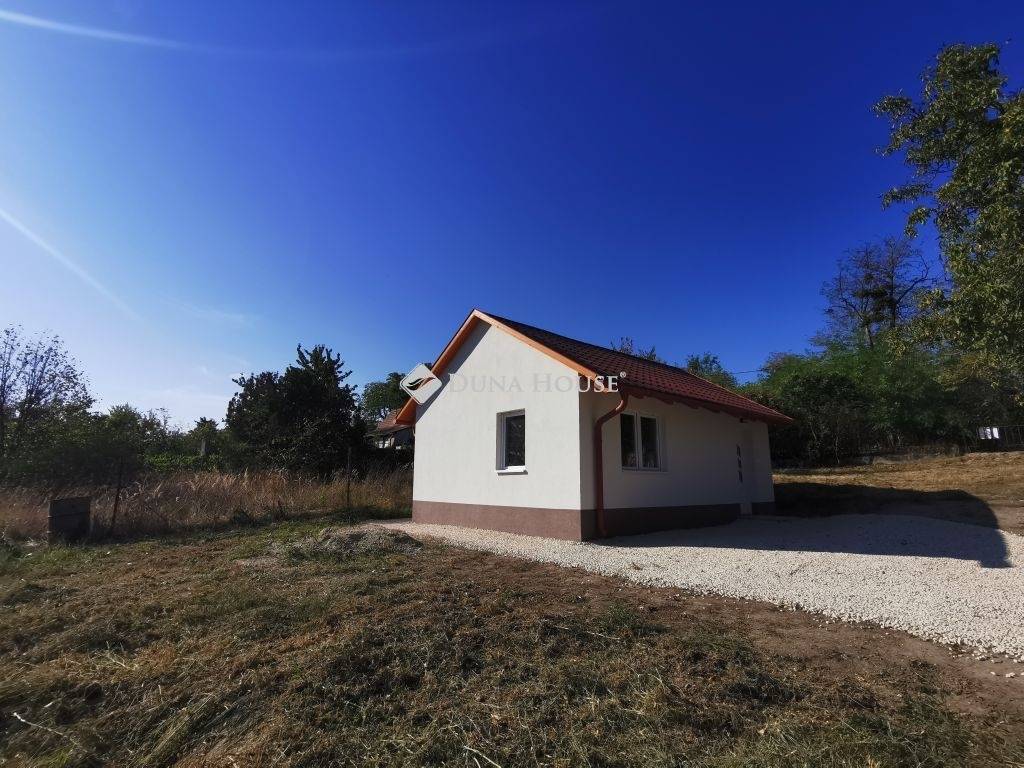 Tata Látóhegyen eladó egy újonnan épült 40 m2-es, könnyűszerkezetes ház 919 m2-es telken.Az épület egy nagyméretű amerikai konyhásnak kialakított helyiségből és egy zuhanyzós wc-s helyiségből áll. Az új tulajdonosnak van lehetősége a nagy helyiséget megosztani egy szobarésznek és egy konyhának.Az ingatlanon 16 A áram van.Az épület önkormányzati építési engedéllyel rendelkezik, de a földhivatali bejegyzés még folyamatban van.A telken nincs víz, az épület vízzel való ellátása a mellette lévő telekről van bekötve, mely szintén eladó. Az eladási ára így 5,9 M Ft-tal megnövekszik. Ezen a telken villany 32 A, víz és 2 kisház van 882 m2-en.Amennyiben nem szeretné megvásárolni, akkor egy kútfúrással oldható meg a vízellátás.Az emésztő készítés szintén folyamatban van.Az épület falában 15 cm üveggyapot, a külső részén 10 cm nikecell szigetelés van. A falban és a mennyezetben hőtükör fólia van.A tető cserepes lemez borítású.A panoráma lenyűgöző. A Látóhegy felső részén helyezkedik el az ingatlan, így a látvány adott. Egyre többen költöznek ki a csend és a nyugalom reményében.Amennyiben felkeltette érdeklődését, hívjon bizalommal.