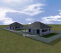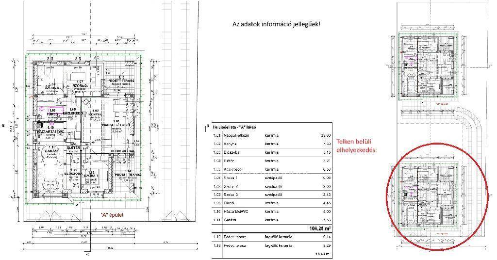 Az alaprajz praktikus és élhető. Tágas amerikai konyhás nappali, három külön nyíló szoba, fürdőszoba, külön WC, két előszoba és fedett teraszok alkotják. A garázs közvetlenül a ház része, ami a mindennapokat jelentősen megkönnyíti.