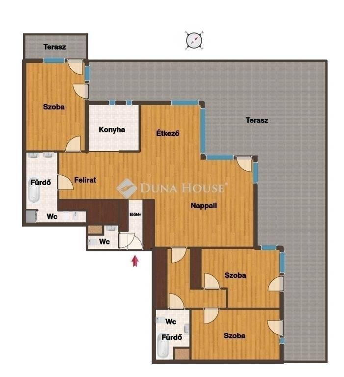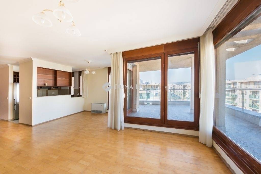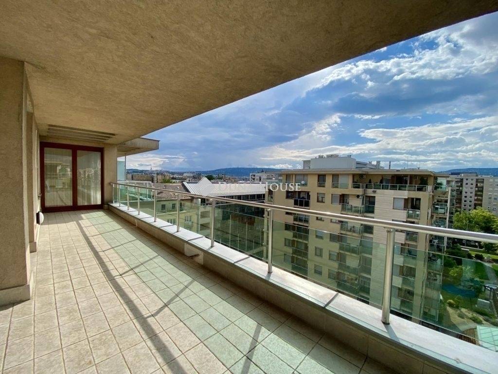 Eladó exkluzív, panorámás penthouse lakás a díjnyertes Kleopátra Házban - 13. kerület, ÚjlipótvárosKivételes lehetőség Budapest egyik legnívósabb lakóparkjában!Eladó egy 107 m²-es, különleges hangulatú, luxus kialakítású penthouse otthon, amelyet egy 45 m²-es, fedett terasz és lenyűgöző, 180°-os panoráma tesz igazán egyedivé. A Kleopátra Ház Újlipótváros csendes, zöldövezeti részén található, pár percnyire a Dunától és a Margit-szigettől.Az ingatlan legfontosabb jellemzői:107 m² lakótér + 45 m² fedett terasz mesés panorámávalTágas, napfényben úszó nappali + 3 külön nyíló hálószoba, mind közvetlen teraszkapcsolattal2 fürdőszoba + külön vendég-WCModern, praktikus térszervezés, akár két külön lakrész kialakításának lehetőségével - ideális családoknak, home office-ként vagy privát vendégtérkéntBeépített tárolók és praktikus helykihasználásIgény esetén teremgarázs és tároló is vásárolható az épületben, külön megállapodás alapján.Lakóparki prémium szolgáltatások helyben:Díjnyertes fejlesztés (2003: Legjobb ingatlanfejlesztés díj)Fedett uszoda piramisvilágítással, jacuzzi, szauna, fitneszteremGondozott, csendes belsőkert és relaxációs terek24/7 biztonsági szolgálat és portaszolgálatExkluzív üzletek és szolgáltatók közvetlenül az épületbenEgyedi építészeti megoldások, üvegpiramis tetőszerkezet a közös terek felettLokáció ahol a kényelem és a természet találkozik:Vásárlási lehetőségek: közeli boltok, Spar, Lidl, Aldi, illetve gyors elérés a Westend City CenterhezKözlekedés: M3 metró, 1-es villamos, busz- és trolivonalak pár perc sétára gyors kapcsolat a belvárossalParkolás: kamerával őrzött mélygarázs, saját parkolóhely vásárlási/bérlési lehetőséggelEz a penthouse nem csupán egy ingatlan, hanem egy különleges életstílus!--------------------------------------------------------------------------------------------------------------------------------------------------------------------Exclusive Panoramic Penthouse for Sale in the Award-Winning Kleopátra House District 13., ÚjlipótvárosA rare opportunity in one of Budapests most prestigious residential developments.We are pleased to present this luxurious 107 m² penthouse, featuring a 45 m² covered terrace with captivating 180-degree panoramic views. Situated in the renowned Kleopátra House, the property lies in one of Újlipótváross most peaceful and sought-after green areas, just steps from the Danube and Margaret Island.Key Features of the Property:107 m² interior space + 45 m² covered terrace with stunning open viewsBright, expansive living room and three separate bedrooms, each with direct terrace accessTwo full bathrooms + guest toiletContemporary, thoughtfully separated layout offering the potential for two independent living zonesideal for families, home office use, or a private guest suiteExtensive built-in wardrobes and well-designed storage solutionsOptional underground parking and storage units are available within the building, subject to separate agreement.Premium Building Amenities:Award-winning real estate development (Best Real Estate Project, 2003)Indoor swimming pool with pyramid-style lighting, jacuzzi, sauna, fitness roomPeaceful, landscaped inner garden and relaxation areas24/7 security and concierge servicesExclusive on-site retail and service units for residents convenienceDistinctive architectural features, including glass-pyramid roof structures providing natural light to communal areasLocation Where Lifestyle Meets Convenience:Shopping: Major supermarkets (Spar, Lidl, Aldi), local specialty shops, and the Westend City Center within easy reachPublic transport: Excellent access to Metro Line 3, Tram 1, and several bus/trolley lines, all just minutes awayParking: Secure underground garage with the option to purchase or rent a private parking spaceThis penthouse is more than a residence it is a lifestyle.