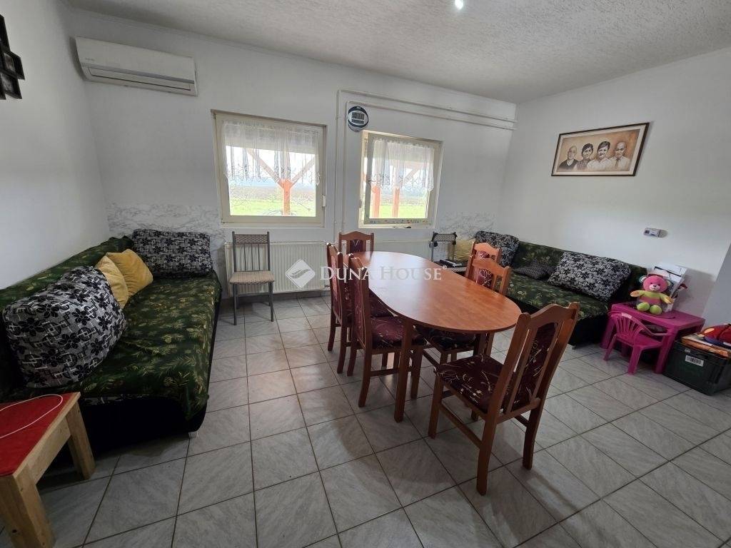 Eladó Görcsöny településen egy egy szintes, 2004-ben épült szép állapotú családi ház.Az ingatlan 4 lakószobával rendelkezik, alapterülete 100 nm, tetőszerkezete Bramac beton cseréppel fedve.A ház egy része tégla építésű, másik része könnyűszerkezetes, a falszerkezet 15 cm kőzetgyapot szigeteléssel, kívülről 10 cm külső szigeteléssel.Az ingatlan nyílászárói műanyagok, fűtése megoldott gázkazánnal, klímával (3,5 kW) , vegyes tüzelésű kazánnal, illetve elektromos kazánnal is.Az épület tetőszerkezetén elhelyezésre került 6,5 kW napelem is, mely az épület teljes villamosenergia költségeit fedezi.Elektromos autó öltésére is megfelelő.Ipari áram is elérhető az ingatlanban.Az ingatlan különlegessége, hogy a lakóépület folytatásaként, egy kislétszámú, HACCP előírásainak maximálisan megfeleltetett lakásétterem is tartozék!A falu ezen részén a csatornahálózat nem elérhető! Az épülethez tartozó területen 42 db gyümölcsfa, épített kemence és fedett terasz is található.Az épületek folytatásaként találunk egy 6x5 méteres fém szerkezetű tároló, ami raktárként, műhelyként használható.Ha további kérdése van, kérem hívjon bizalommal!