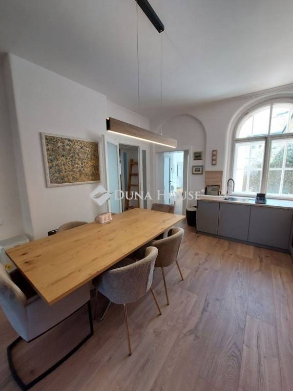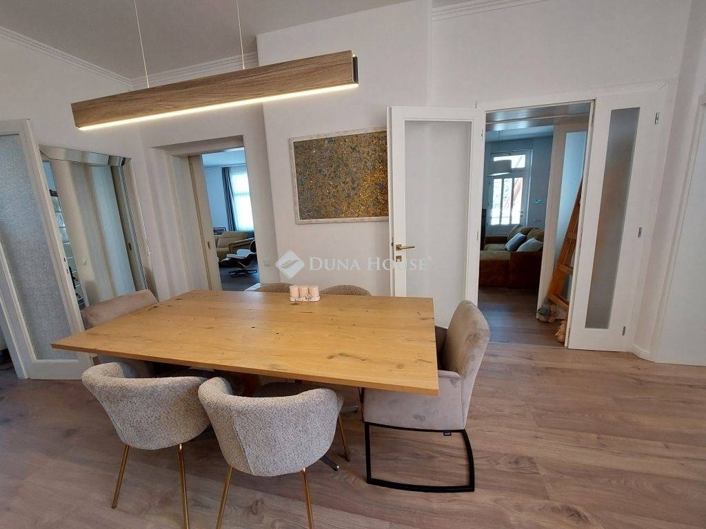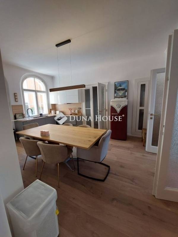 Baján frekventált helyen földszinti 121 m2-es PRÉMIUM minőségben felújított, csendes, világos lakás eladó!A TÁRSASHÁZA ház központi helyen, parkra néző környezetben helyezkedik el.Az 1900-as évek elején épült igényes polgári tégla ház külső jellegét megőrízték, állapotát megóvták, karbantartották, felújították.Az épületben összesen 5 lakás található két szinten.A LAKÁS2024-ben teljeskörű felújítás történt prémium minőségben.A lakás áll ~ 60 m2-es nappali, hálószoba kapcsolódó fürdőszobával, konyha - étkező, közlekedő, wc, előszoba helyiségekből.A fűtés Westen kondenzációs kazánnal működtetett korszerű padlófűtés.A melegvíz ellátás szintén a gázkazánról történik.Kiegészítő fűtésként egy cserépkályha is rendelkezésre áll, amely egy új építésű kéményhez kapcsolódik.A hűtés 5,2 kw-os klímával megoldott.A lakásban három fázisú villamoshálózat került kiépítésre.A nyílászárók részben hőszigetelt műanyagok, elektromos redőnnyel, szúnyoghálóval ellátva, részben az eredetiek kerültek felújításra ~ a polgári hangulatot megőrízvén.A lakás kamerarendszerrel és riasztóval felszerelt.A lakáshoz igény szerint megvásárolható az utcáról távirányítos kapuval nyíló 15 m2-es / 3 x 5m / garázs 10 millió forintos áron!AJÁNLÁSA lakást ajánlom mindazoknak, akik PRÉMIUM minőségű, tágas, csendes, világos lakást szeretnének!Ha szeretnél egy igényes, kulcsrakész otthont központi helyen, de mégis zöldövezetben? Ez a lakás NEKED szól!A mellette lévő 50 m2-es felújított lakás szintén eladó, igényszerint együtt is megvásárolhatók! Jelenleg a két lakás között dupla ajtós összeköttetés van!Amennyiben a hírdetés felkeltette az érdeklődését, kérem hívjon!