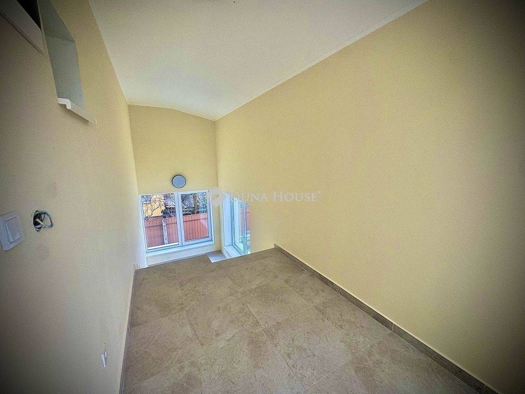 Eladó egy napfényes, nettó 113 négyzetméteres, két szintes társasház felső szintje zöldövezeti környezetben. Ez az ngatlan duplakomfortos, három szobával, konyhai felszereléssel és egy 924 négyzetméteres telken helyezkedik el, fedett autóbeállóval. 18.kerület szívében.