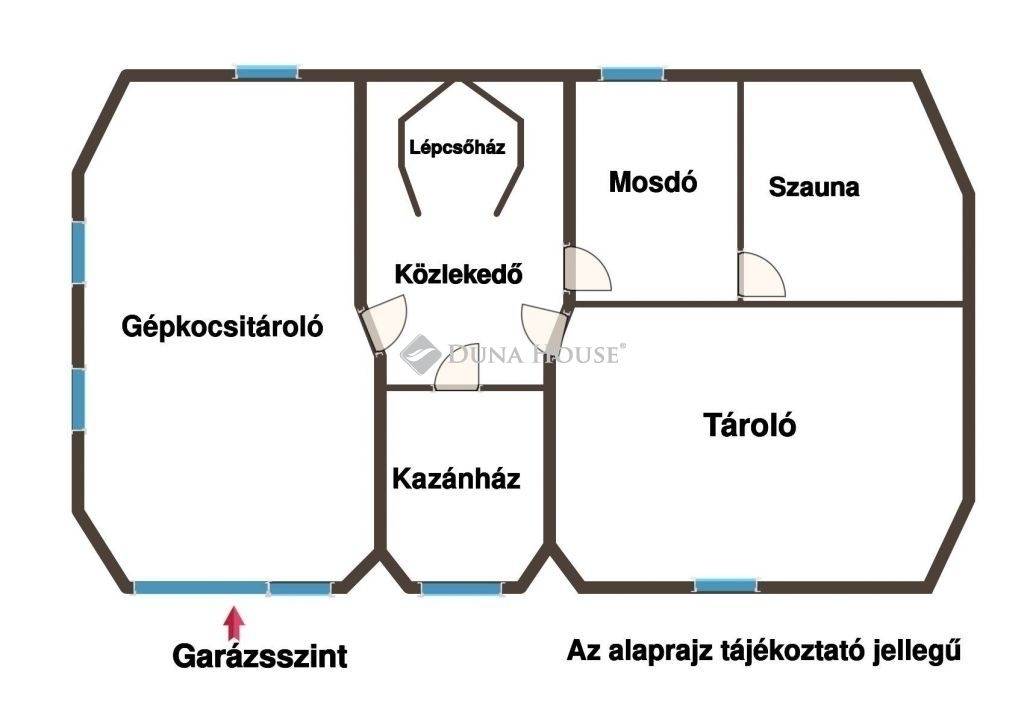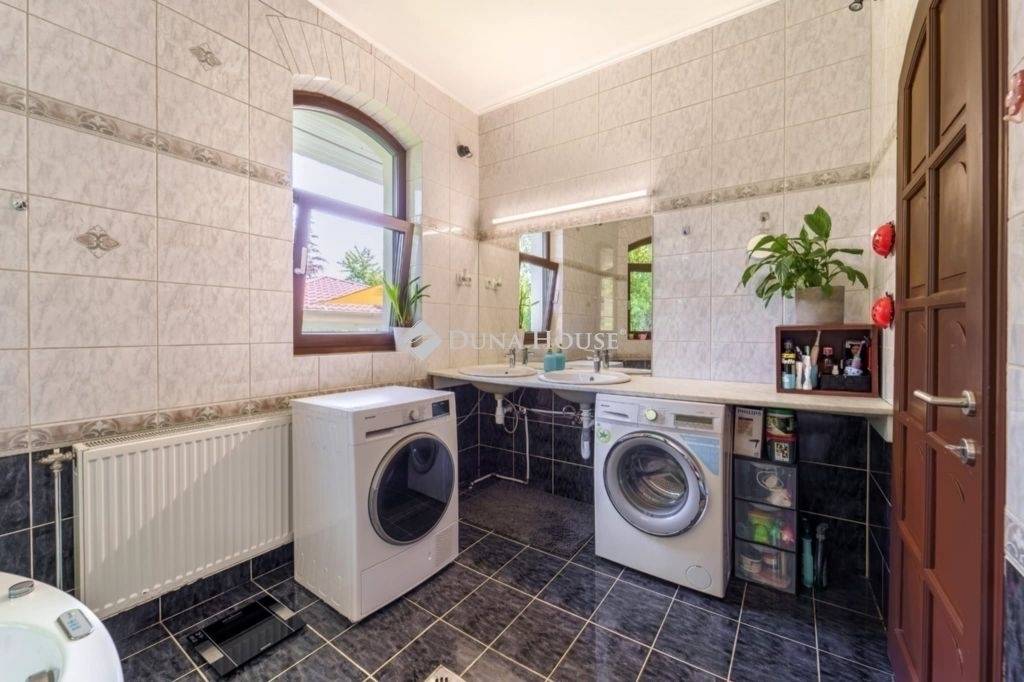 Pinceszinten dupla garázs, gépészeti helyiség, gázkazán, vegyes tüzelésű kazán, tároló és egy vizes blokk.