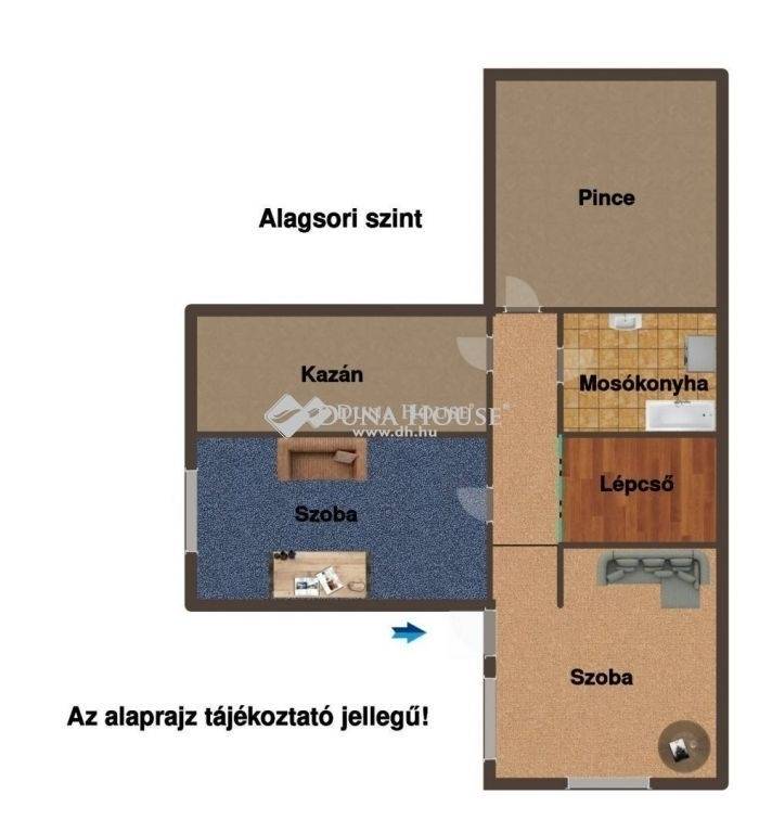 Szuterén: mosókonyha, pince, kazánház, 2 szoba