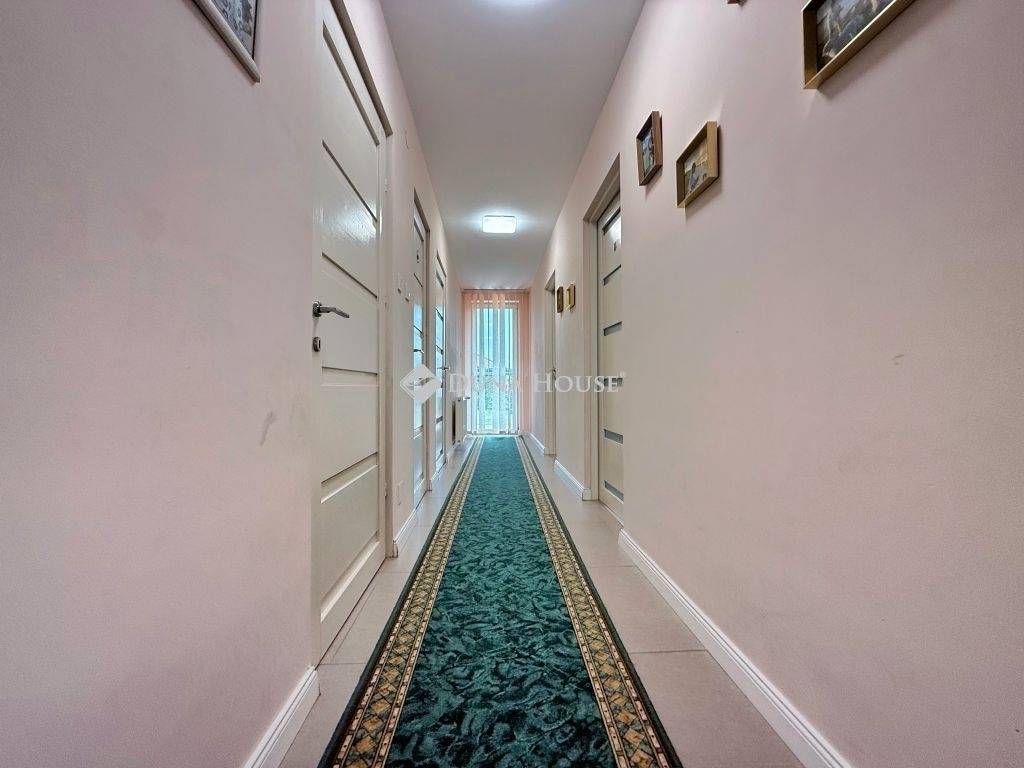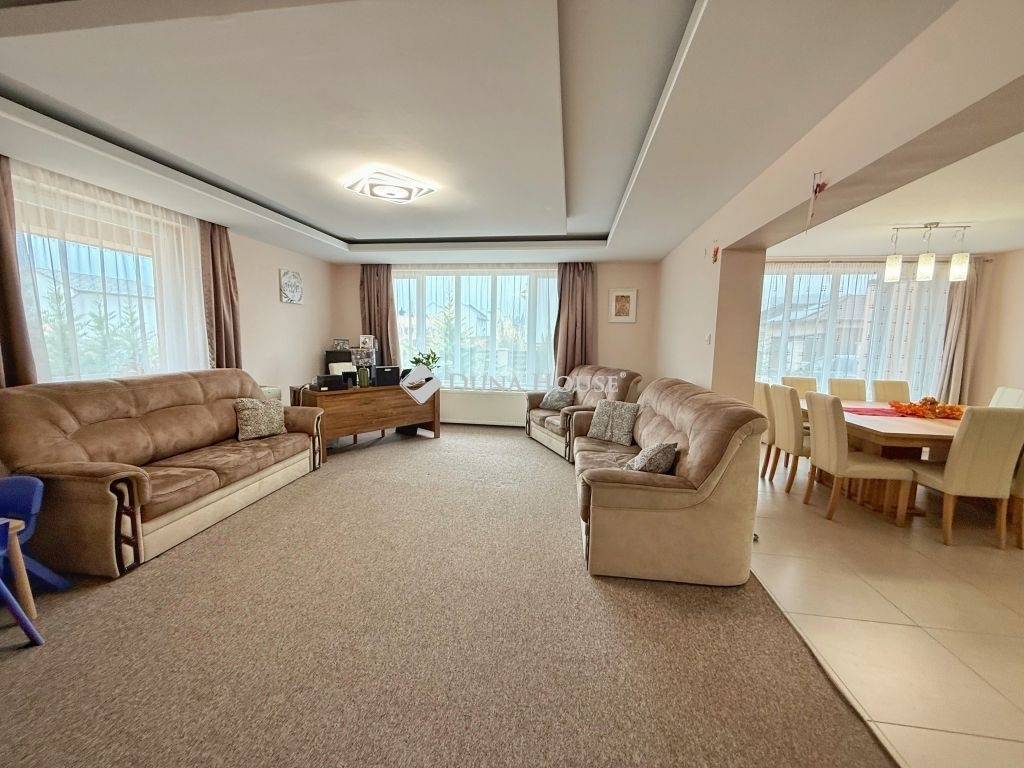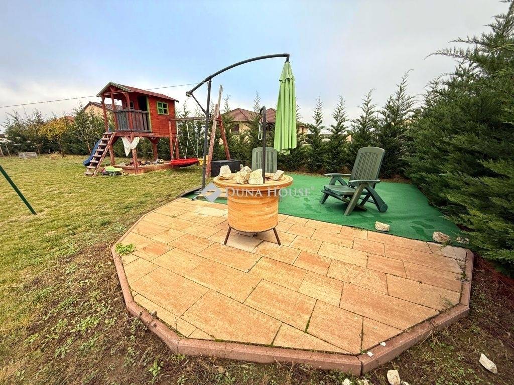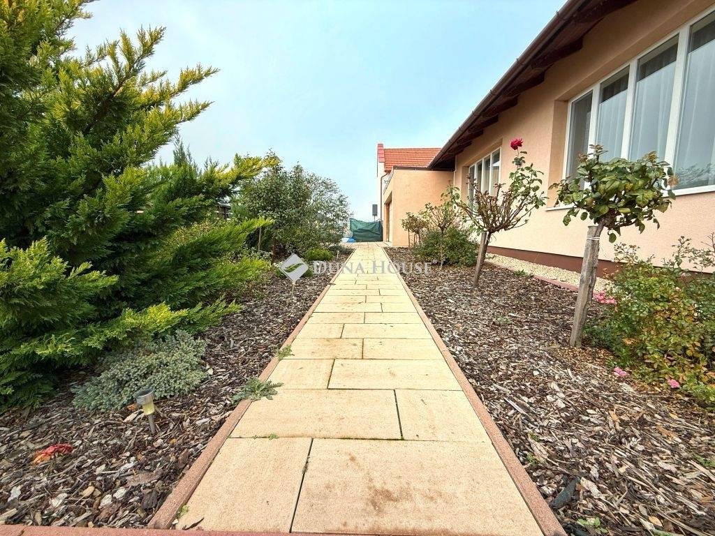 Eladó egy igényes kivitelezésű, mediterrán stílusú családi ház egy folyamatosan fejlődő, nyugodt, rendezett környezetben. A ház megtervezésekor kiemelt szerepet kapott a komfort és az energiahatékonyság: a hálószobák tökéletes tájolásának köszönhetően a nyári csúcs melegben sem éri őket közvetlen napsütés, így ott valóban nincs szükség hűtő-fűtő klímára.A konyha-nappali térbe került egy nagy teljesítményű klíma, amely a központi részt könnyedén temperálja, de a ház jól átgondolt kialakítása miatt ritkán van rá szükség.A bruttó 205 m²-es otthon 3 tágas hálószobát, világos nappali-étkező-konyha részt, kamrát, külön gardróbhelyiséget, 2 fürdőt, valamint gépesített, minőségi konyhát kínál. A burkolatok, a belső anyaghasználat és a részletmegoldások prémium kategóriát képviselnek.Az ingatlanhoz tartozik egy 42 m²-es dupla garázs, valamint egy 20 m²-es fedett, nyitott terasz, amely közvetlenül a gondosan beültetett, teljesen intim kertre néz. A tujasor, a rendezett pázsit és a természetközeli hangulat valódi biztonságos komfortzónát ad.Az épület grafitos szigeteléssel ellátott, napelemrendszerrel felszerelt, amely a jelenlegi fogyasztást szinte teljes egészében kitermeli. Ennek köszönhetően a fenntartási költségek különösen kedvezőek.A környék rendezett, folyamatosan fejlődik, az infrastruktúra néhány perces sétával elérhető. Az ingatlan így nemcsak kényelmes otthon, hanem hosszú távon is értékálló választás.A környezet értéke stabilan növekszik, így a ház nemcsak otthonként, hanem befektetésként is kiváló választás.