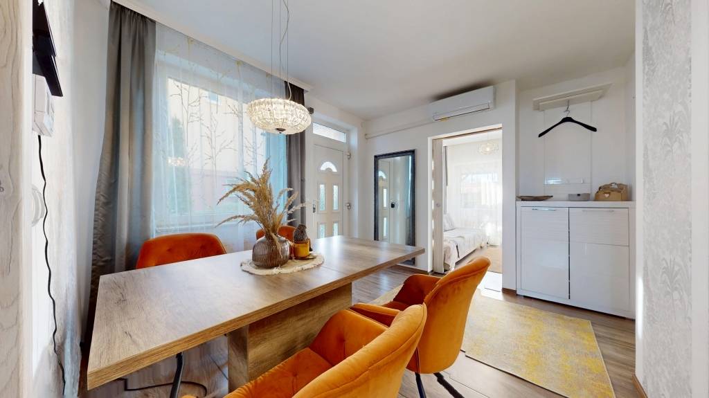 Modern, napelemes családi ház eladó a Nyírbátorban - közel a városközponthoz, akár azonnali költözéssel! Eladásra kínálunk egy 51 nm-es, felújított kertes házat 21 nm-es fedett terasszal, mindössze 800 méterre a centrumtól. Az ingatlan minden részletében átgondolt, korszerű otthon: 8 éve teljes körű felújítást kapott , megújult a villamos- és vízhálózat, a fűtésrendszer, valamint új cseréptető került rá. Energiatakarékos, fenntartható otthon 3 fázisú, 3,5 kW-os napelemrendszer, még 8 évig éves szaldós elszámolással , így a rezsiköltség gyakorlatilag 0 Ft is lehet Bosch kondenzációs gázkazán, átlagosan mindössze 10.000 Ft/hó fűtéssel Klíma, amely nyáron hűt, télen rásegít a fűtésre Kényelem és biztonság minden szinten Okostelefonról vezérelhető kamerarendszer és motoros kapu Kovácsoltvas jellegű kerítés, esztétikus és biztonságos 3 kamrás műanyag nyílászárók és motoros redőnyök Belső tér és elrendezés: A ház elosztása praktikus és otthonos: 2 külön nyíló szoba, konyha , étkező , fürdőszoba, beépített gardrób .Ízléses, modern bútorzat, amely igény esetén maradhat A ház vegyes falazatú, kiváló állapotban van, és azonnal beköltözhető , sem felújításra, sem plusz ráfordításra nincs szükség. Csendes, rendezett környezet, mégis közel mindenhez. Ideális választás pároknak, kis családoknak vagy bárkinek, aki energiatakarékos, korszerű otthont keres. OTP Banki hátterünknek köszönhetően finanszírozási igényekben (pl. Otthon Start Hitelprogram, Babaváró, Falusi CSOK, CSOK Plusz, Lakáshitel, Személyi kölcsön stb.), illetve biztosítások tekintetében is díjmentesen, soron kívüli ügyintézéssel segítem ügyfeleim! Ez a ház nem marad sokáig a piacon , hívjon még ma, és nézze meg személyesen !Referenciaszám: M316493