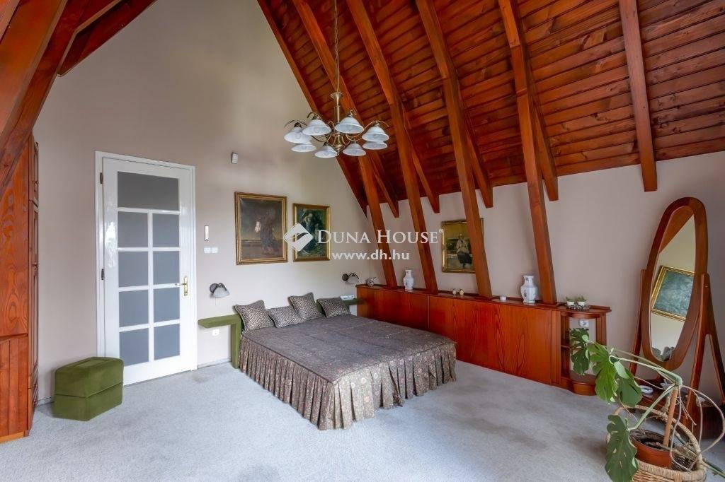 Velencén, a standtól és a csónakkikötőtől néhány lépésre eladó egy Makovecz Imre által tervezett családi ház.Ez az egyedi, stílusos ház, kiválóan alkalmas otthonnak, nyaralónak, vagy akár panziónak is kisebb átalakítás után. A 3 szintes ingatlan extrán felszerelt, nappali+6 hálószobás, több fürdőszobás. A szuterénben biliárd terem, kártyaszoba, wellness, finn szauna és szolárium, a kertben játszótér, tó, minden irányban tájolt fedett és nyitott teraszok, trambulin és kerti grill fokozza a kényelmet.A dupla garázs, központi porszívó, elektromos kapuk, klímák, beépített stílusos bútorok hozzá tartoznak a felszereltséghez.Az ingatlan 1998-ban épült, 2880 m2 parkosított telken fekszik. A belmagasság átlagosan 3,2 méter, a nappaliban 8 méter.A házban 2 kandalló is helyet kapott, mindkettő Denke Gábor kandalló készítő mester munkája.A konyha gránit pultokkal és Miele háztartási gépekkel felszerelt.A vételár részét képezi a világítás, mely tökéletes összhangban van a ház stílusával. Grünberger Tamás mester munkája, aki a Parlament, Operett és Operaház csillárjait is készítette.A fűtésről gázkazán gondoskodik az egész házban padlófűtéssel. A nyílászárók dupla rétegűek.Az ingatlan rezsije alacsony, hiszen a ház tökéletes tervezésének és kivitelezésének köszönhetően energia takarékos.A ház nyilvántartott és hivatalosan jegyzett Makovecz ház!A telek nagyságából adódón medence, teniszpálya is elhelyezhető még. A garázson kívül több autó számára elegendő parkolóhely áll rendelkezésre.A közelben minden szolgáltatás megtalálható: éttermek, cukrászda, kávézó, bevásárlási lehetőségek. A Velence korzó 1.5 km, a vasút 2 km. M7 autóval 3 perc.Ha kérdése van, vagy szeretné megtekinteni az ingatlant, hívjon bizalommal.At Velence, just a few steps away from the bath and the boat port, a family house designed by Makovecz Imre is for sale.This unique, stylish house is very appropriate for a home, summer house, or even a boarding house, after minor modifications. The 3 storey property is loaded with features, and has a living room + 6 bedrooms, and multiple bathrooms. In the basement a snooker room, playing cards room, wellness, Finnish sauna and solarium enhance comfort, and so do the playground, lake, trampoline, grill, as well as open and covered terraces looking in all directions in the garden. Double garage, central vacuum cleaner, electric gates, climate controls, and stylish, built-in furniture are all part of the features.The property was built in 1998, and lies on a 2880 m2 landscaped plot. Average interior height is 3,2 metres, 8 metres in the living room. There are two fireplaces in the house, both the handiwork of Denke Gábor fireplace building master. The kitchen is equipped with granite counters and Miele domestic appliances. Part of the purchase price is lighting, which is in perfect harmony with the style of the house. It is the handiwork of master Grünberger Tamás, who also made the chandeliers of the Parliament, Operetta Theatre, and the Opera House. Heating is provided by a gas boiler in the whole house, with floor heating. Doors and windows are double layered. Overhead of the property is low, as the house, thanks to its perfect design and execution, is energy-efficient.The house is a registered and officially recorded Makovecz house!Thanks to the of the plot, a swimming pool, and/or tennis court could also be placed. Outside the garage, there is adequate parking space for multiple vehicles. All services can be found in the vicinity: restaurants, cake-shop, café, shopping opportunities. The Velence Corso is 1.5 kms, the railroad is 2 kms away. Motorway M7 is 3 minutes by car.If you have any questions or wish to view the property, don’t hesitate to call me.