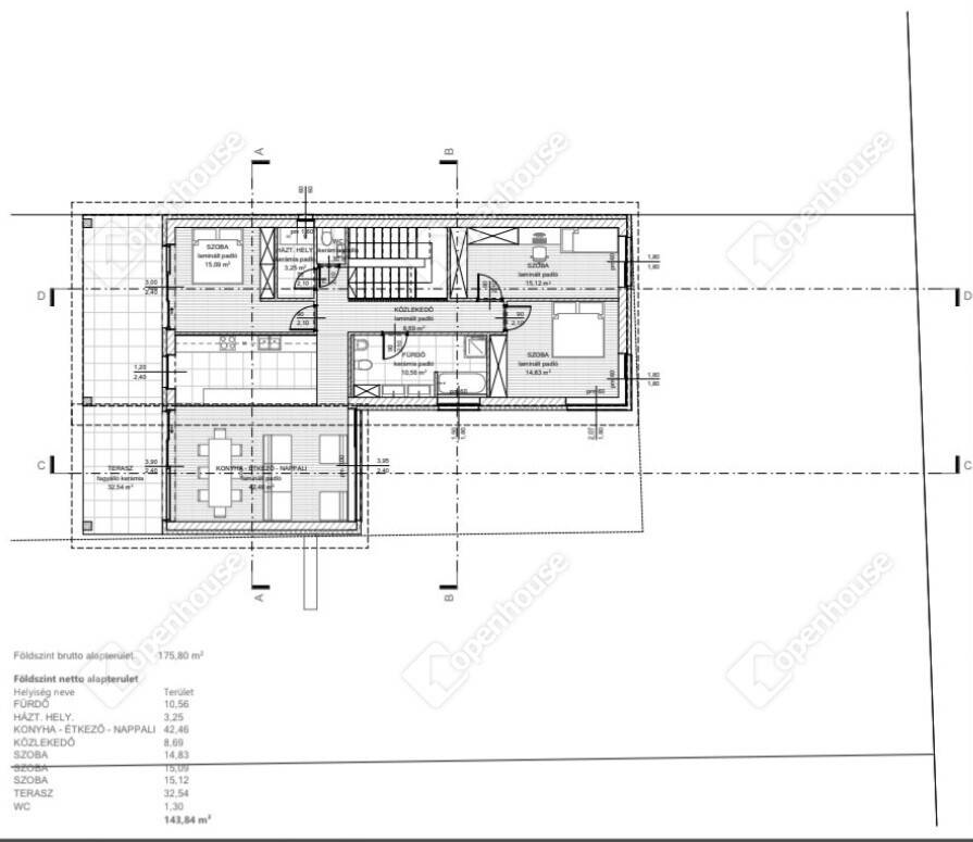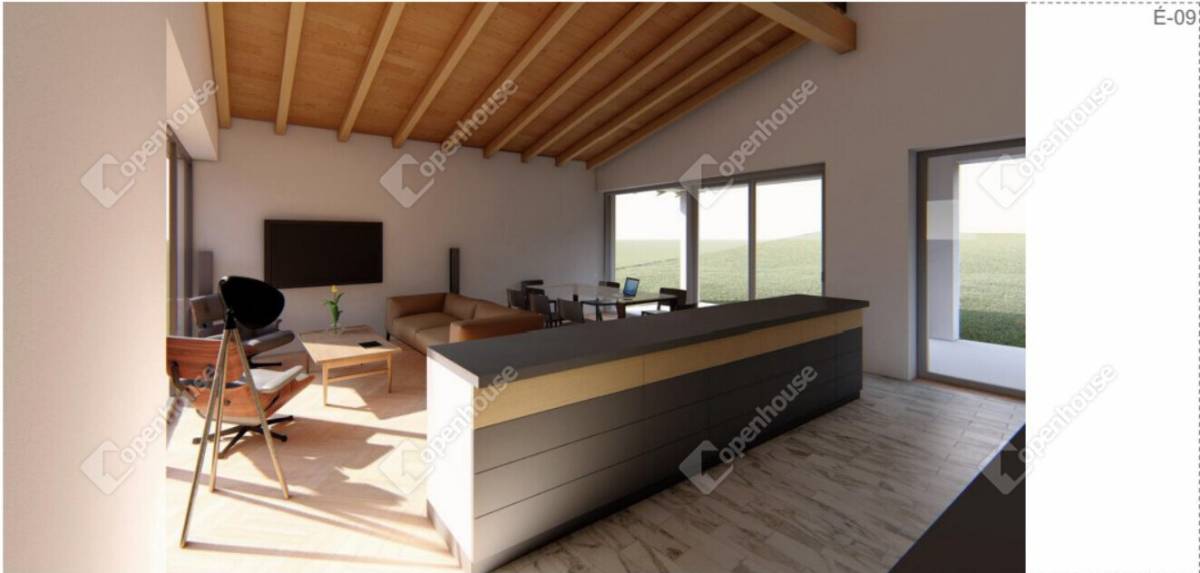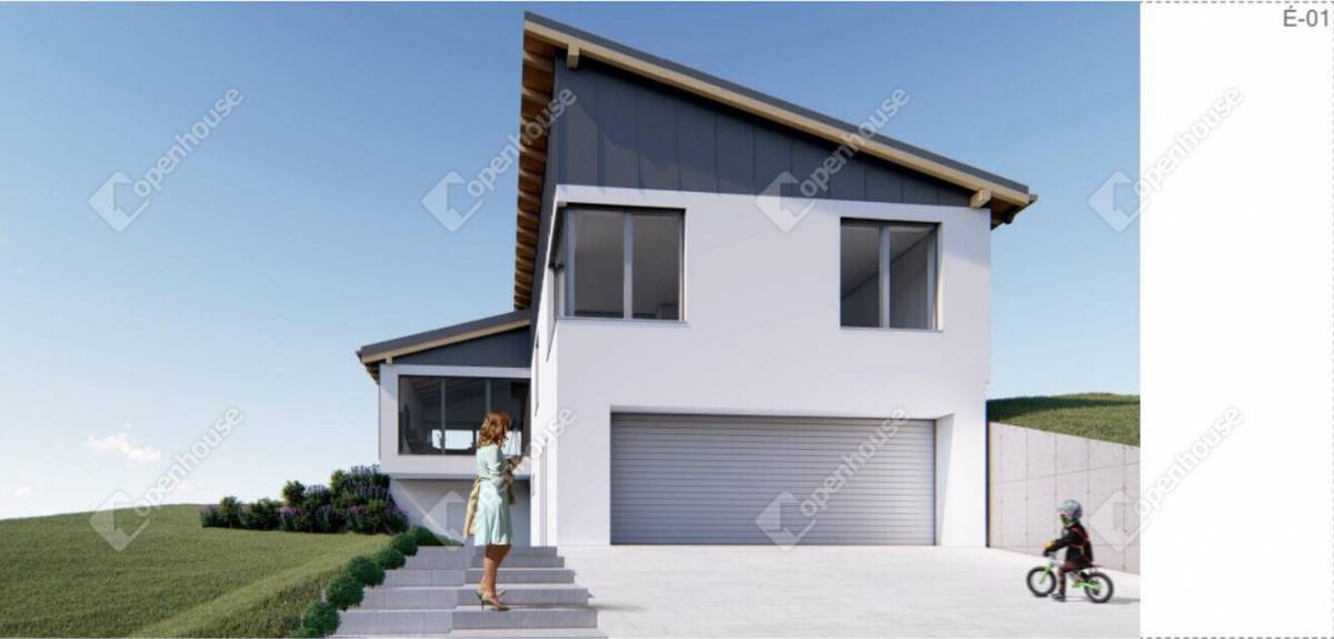 Ez a 216 m²-es, nettó alapterületű ingatlan jelenleg az alapozási fázisban van, és engedélyezett tervek szerint 2026 nyarára készül el. Az ingatlan két szintes: a földszinten amerikai konyhás, étkezős nappali, három hálószoba, egy fürdő, egy háztartási helyiség, valamint egy külön WC kap helyet, és a nappaliból egy 32 m²-es teraszra léphetünk ki.