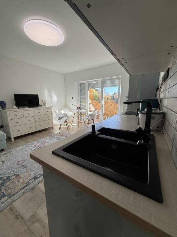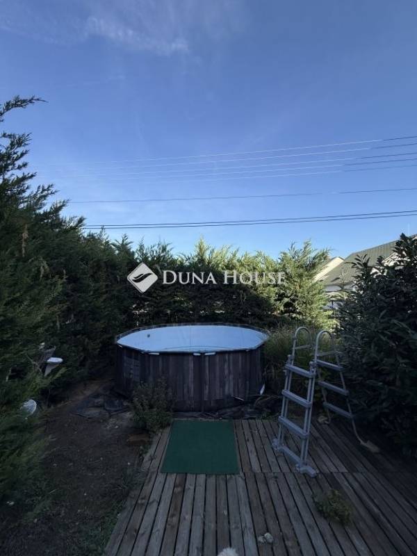A 190 m²-es saját kert igazi ékkő: gondozott zöldterület, kényelmes kerti bútorok és hűsítő medence várja a pihenni vágyókat.