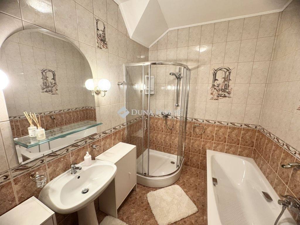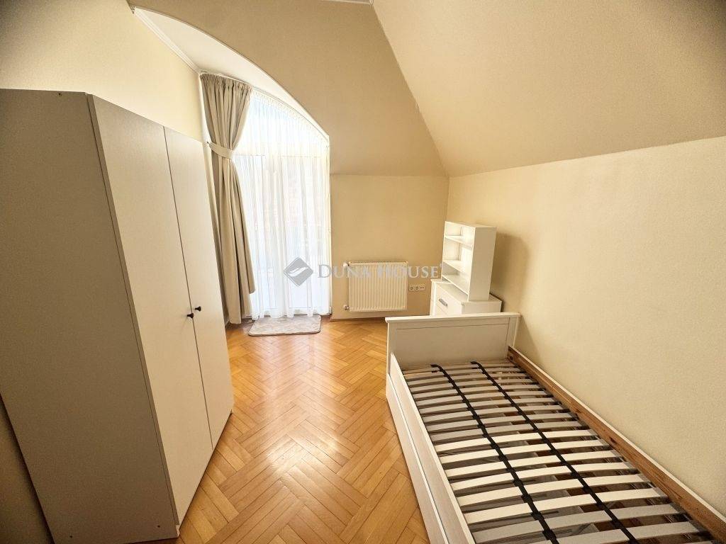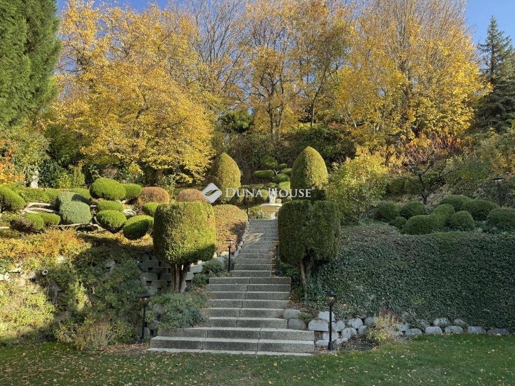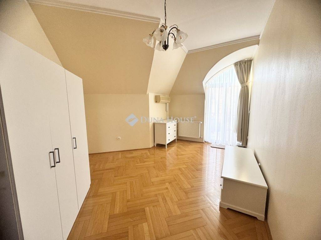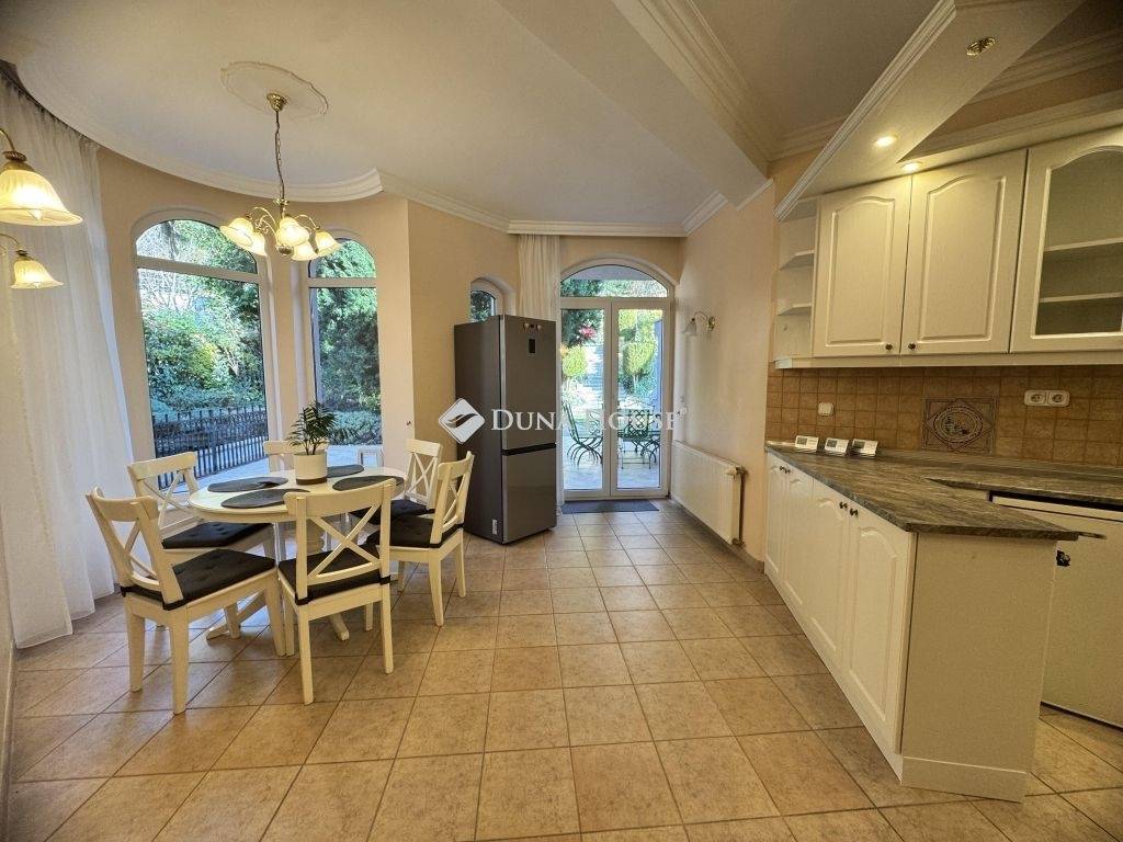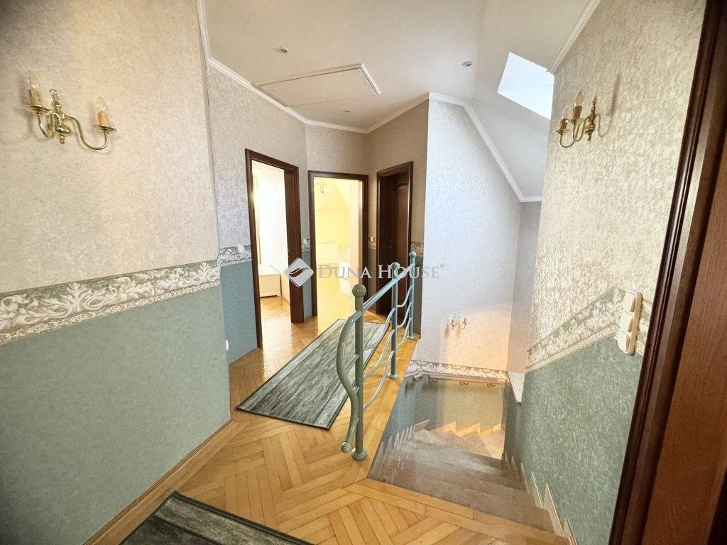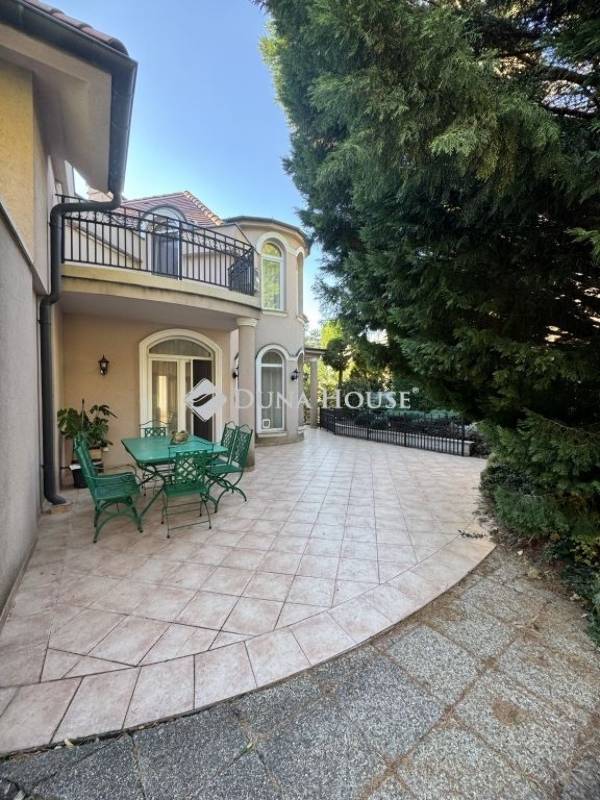 2000-ben épült, 230 m²-es, háromszintes ikerház bal oldali fele, 1079 m²-es, gondozott, parkosított közös kerttel.A klasszikus stílusban épült ház napfényes, csendes környezetben található, közel az Angol Iskolához és a belvároshoz.Elrendezés:Földszint: 35 m²-es nappali, 20 m²-es első terasz, szeparált étkezős konyha , hátsó terasz közvetlen kertkapcsolattal, vendég mosdóEmelet: 3 hálószoba és 2 fürdőszobaAlsó szint: 2 szoba, fürdőszoba, mosdó, mosókonyha, kazánházA szobák légkondicionáltak és tölgyfa parkettával burkoltak. Az ingatlan részben bútorozott, a teremgarázsban két autó számára biztosított beállóhely. A ház kiváló közlekedés mellett, mégis egy csendes, nyugodt utcában helyezkedik el.