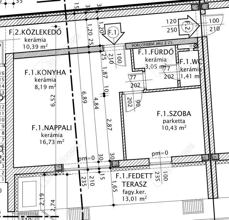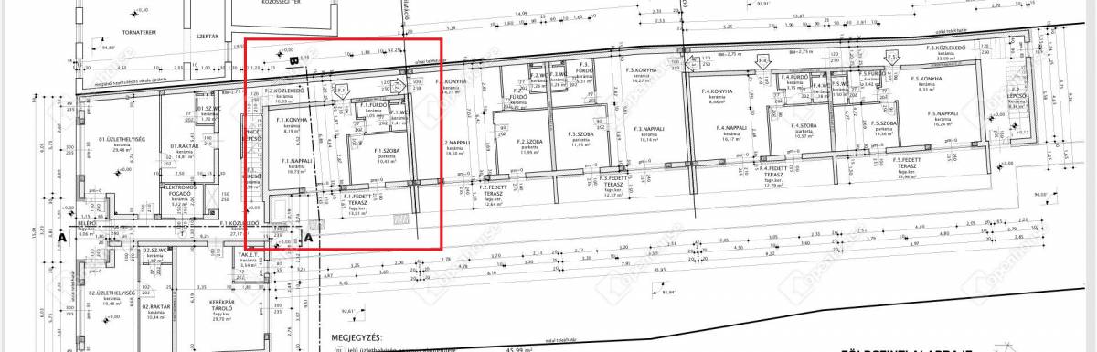 - F1 lakás 39,81 m2 + 13,01 terasz + 27 m2 kertkapcsolat