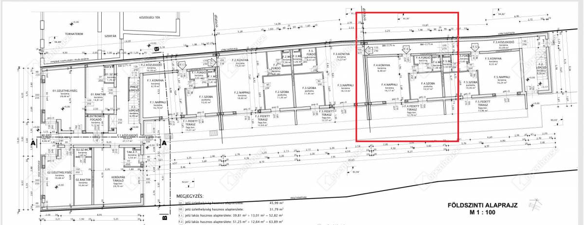 - F4 lakás 39,75 m2 + 12,79 m2 terasz + 60 m2 kertkapcsolat