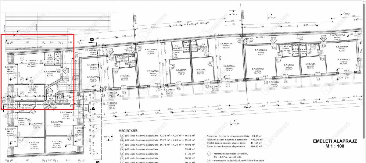 - E1 lakás 42,33 m2 + 4,2 m2 erkély