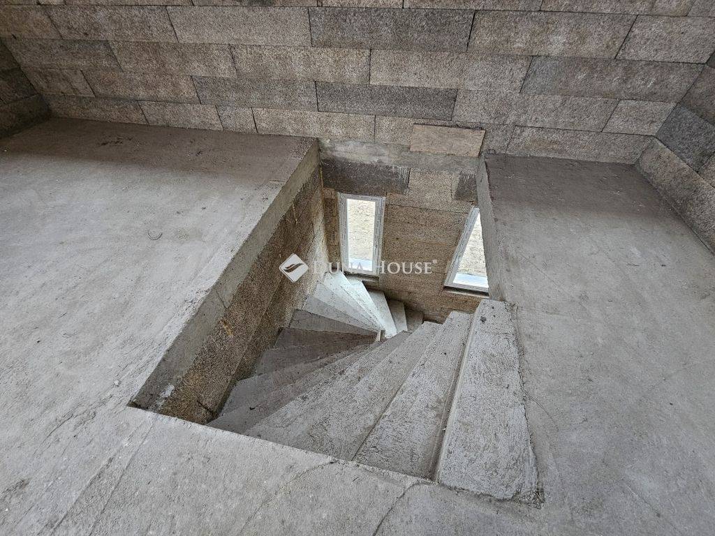 Az emeletre lépcső vezet, ahol kialakításra kerül 4 szoba, két zuhanyzó, konyha és terasz is.