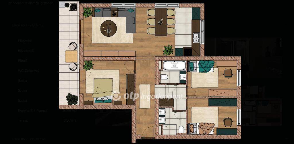 A projekt lakásai tágas amerikai konyhás nappalival, kényelmes hálószobákkal és saját terasszal rendelkeznek, kialakításukban a korszerű technológia és a gondos tervezés dominál. A bemutatott ingatlan egy első emeleti, világos, teraszos lakás amely praktikus elrendezésével és jó helykihasználásával ideális választás lehet állandó otthonnak vagy nyaralónak.