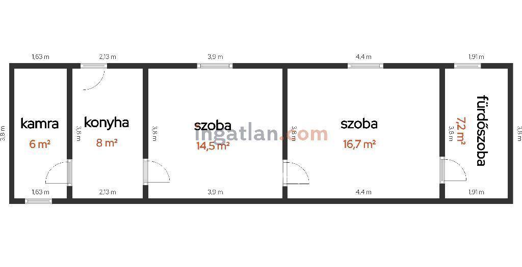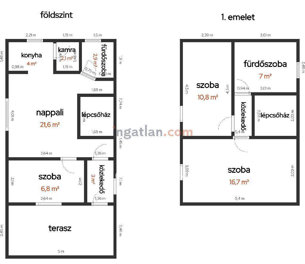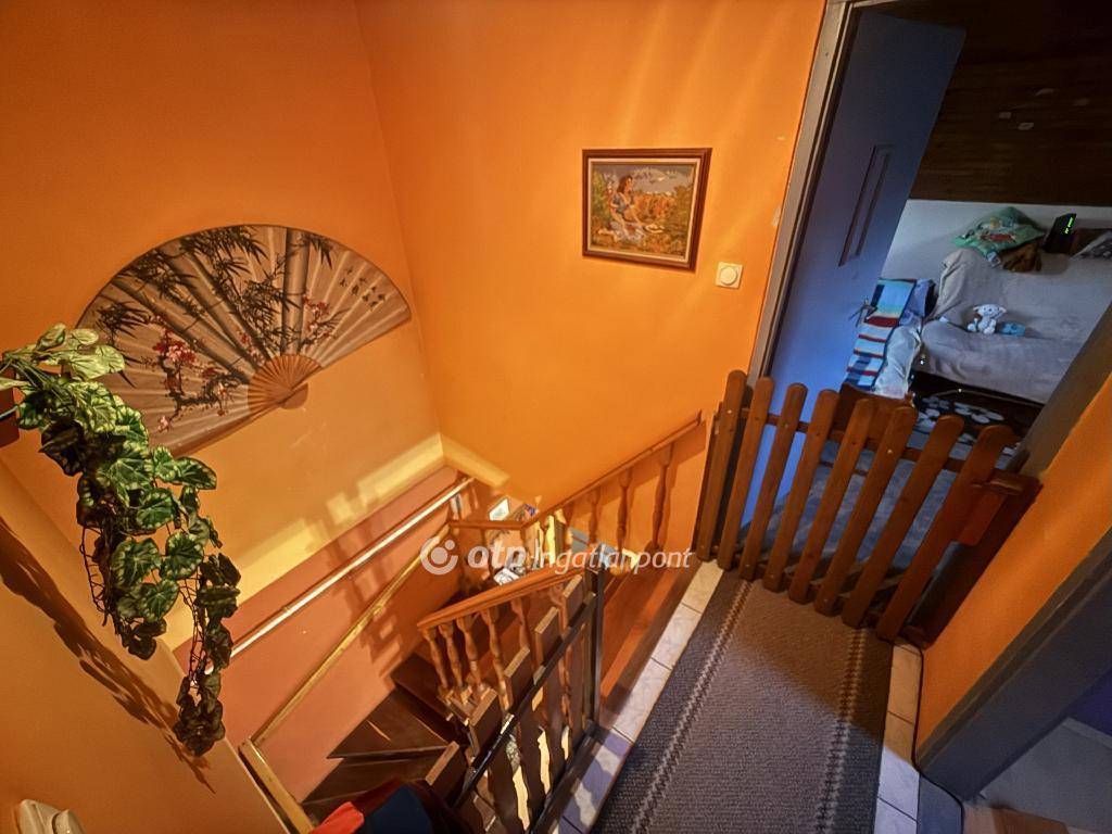 Alsó szint (38,6 nm), tartozik hozzá egy amerikai konyhás nappali, 1 szoba, kamra, fürdőszoba, előszoba. Az emelet (36,1 nm), tartozik hozzá 2 szoba és egy külön fürdőszoba is. Az ingatlanban dupla fürdőszoba és WC is helyet kapott. Fűtése gázkonvektorral megoldott.