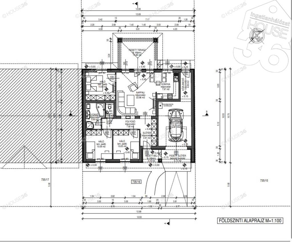 Kecskemét határában, 440 m2 parkosított telken, 105 m2-es, nappali + 3 szobás, garázsos ház eladó!