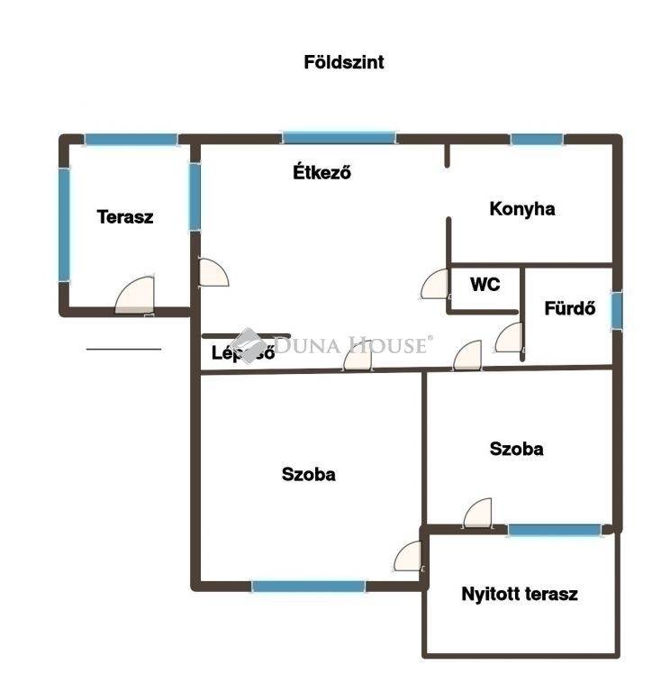 Jelenlegi elosztás: egy 25,6 m²-es szoba, egy 14,4 m²-es szoba, előtér, fürdő, terasz, plusz 17,66 m² padlástér.
