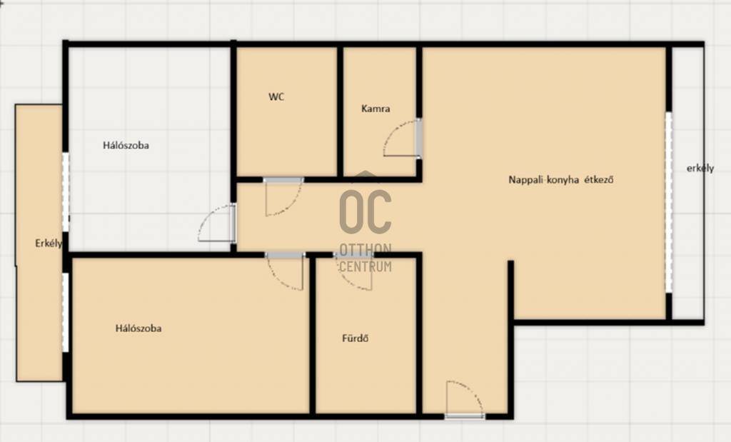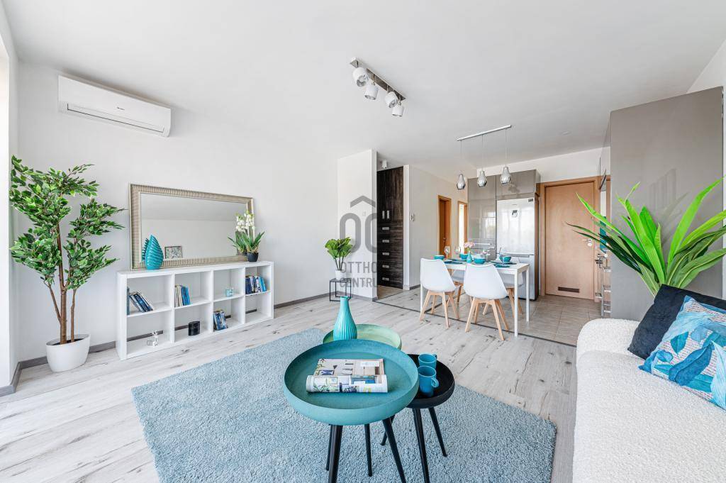 A tágas nappali és a világos hálószobák kiváló elrendezésének köszönhetően a lakás egyszerre praktikus és harmonikus élettér.