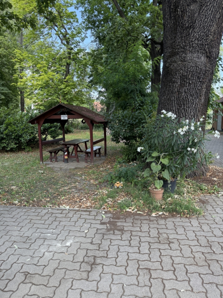 ➡️ Parkosított, nyugodt udvar – ideális kávézgatásra vagy olvasásra ☕