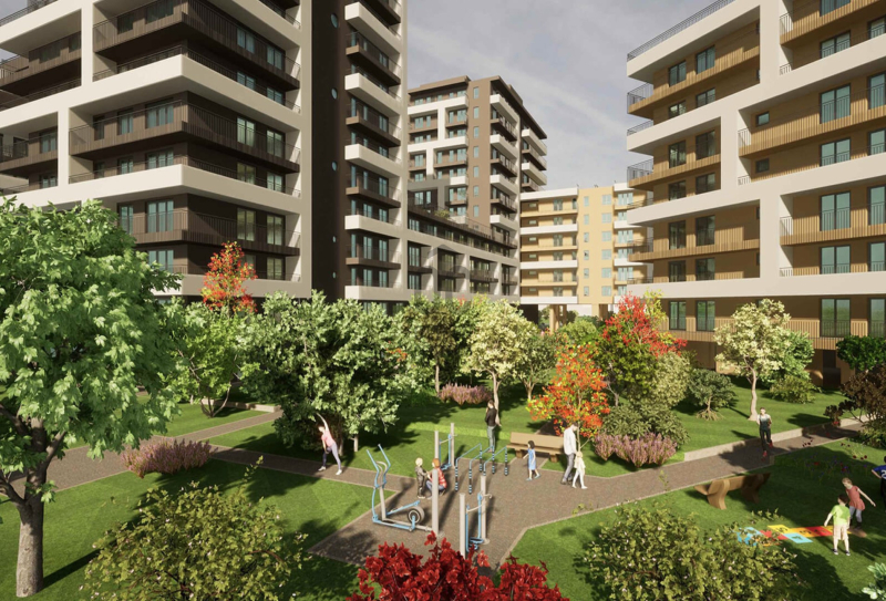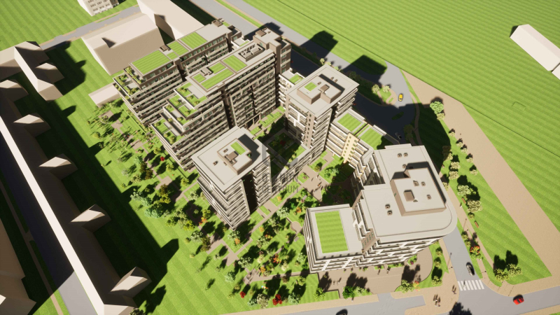A földszint + 13 emelet magas épületet elegáns, kertépítők által tervezet parkok veszik körül. A zárt, csak a társasház lakói által megközelíthető udvaron fákkal, cserjékkel tarkított, füvesített zöldkert kerül kialakításra.