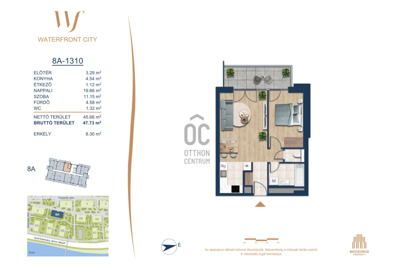 A Waterfront City egy új, modern városnegyed a 3. kerületben, ahol a természet közelsége és a városi kényelem tökéletes egyensúlyban van. A Duna-part közvetlen szomszédságában elhelyezkedő fejlesztés különleges atmoszférát kínál: a sétányt új épületek határolják, üzletekkel, kávézókkal és szolgáltatásokkal, amelyek élhető közösségi teret teremtenek.