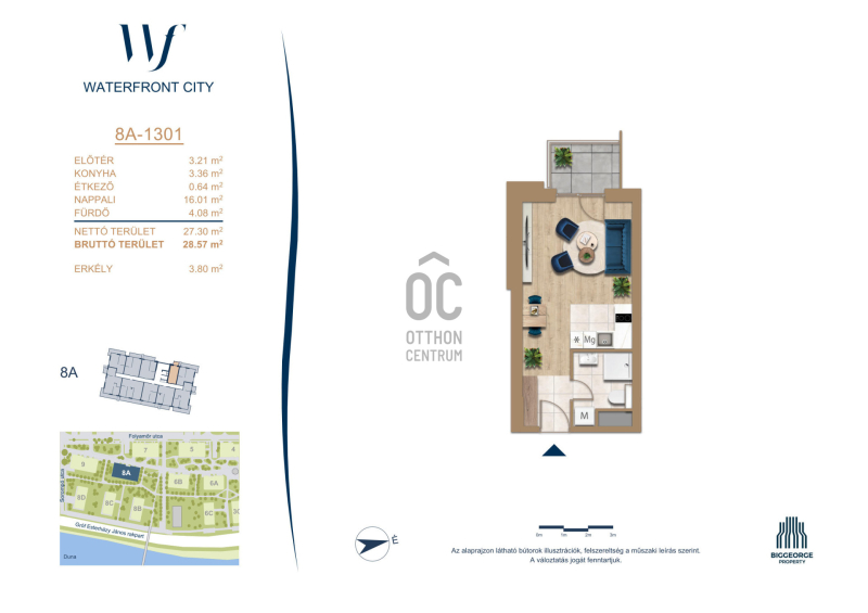 A Waterfront City egy új, modern városnegyed a 3. kerületben, ahol a természet közelsége és a városi kényelem tökéletes egyensúlyban van. A Duna-part közvetlen szomszédságában elhelyezkedő fejlesztés különleges atmoszférát kínál: a sétányt új épületek határolják, üzletekkel, kávézókkal és szolgáltatásokkal, amelyek élhető közösségi teret teremtenek.