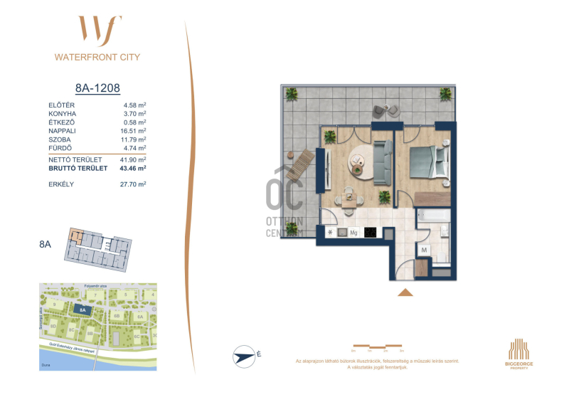 A Waterfront City egy új, modern városnegyed a 3. kerületben, ahol a természet közelsége és a városi kényelem tökéletes egyensúlyban van. A Duna-part közvetlen szomszédságában elhelyezkedő fejlesztés különleges atmoszférát kínál: a sétányt új épületek határolják, üzletekkel, kávézókkal és szolgáltatásokkal, amelyek élhető közösségi teret teremtenek.