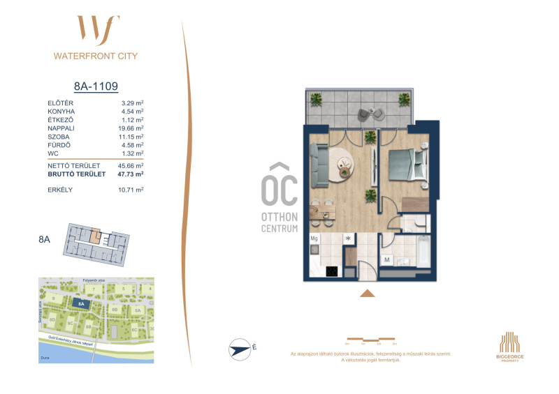 A Waterfront City egy új, modern városnegyed a 3. kerületben, ahol a természet közelsége és a városi kényelem tökéletes egyensúlyban van. A Duna-part közvetlen szomszédságában elhelyezkedő fejlesztés különleges atmoszférát kínál: a sétányt új épületek határolják, üzletekkel, kávézókkal és szolgáltatásokkal, amelyek élhető közösségi teret teremtenek.