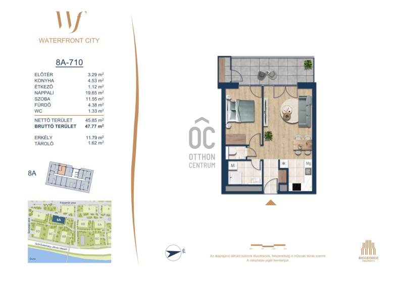 A Waterfront City egy új, modern városnegyed a 3. kerületben, ahol a természet közelsége és a városi kényelem tökéletes egyensúlyban van. A Duna-part közvetlen szomszédságában elhelyezkedő fejlesztés különleges atmoszférát kínál: a sétányt új épületek határolják, üzletekkel, kávézókkal és szolgáltatásokkal, amelyek élhető közösségi teret teremtenek.