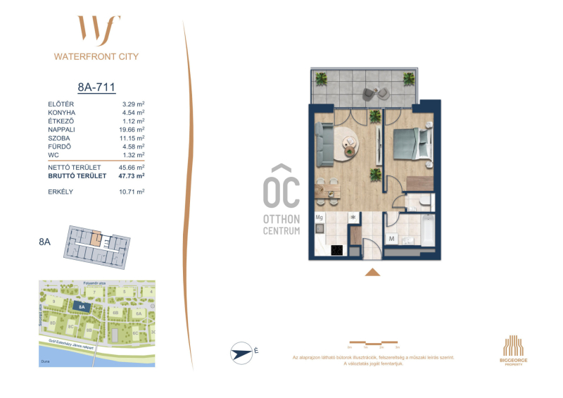 A Waterfront City egy új, modern városnegyed a 3. kerületben, ahol a természet közelsége és a városi kényelem tökéletes egyensúlyban van. A Duna-part közvetlen szomszédságában elhelyezkedő fejlesztés különleges atmoszférát kínál: a sétányt új épületek határolják, üzletekkel, kávézókkal és szolgáltatásokkal, amelyek élhető közösségi teret teremtenek.