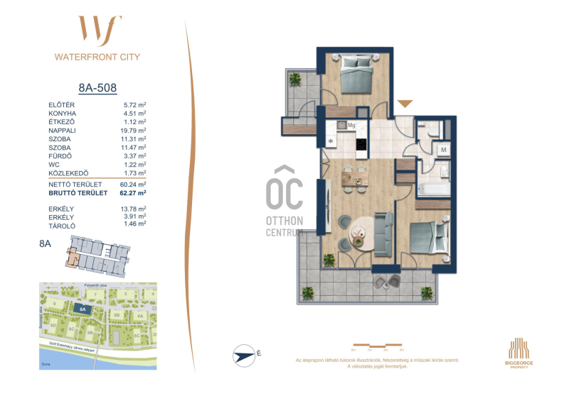 A Waterfront City egy új, modern városnegyed a 3. kerületben, ahol a természet közelsége és a városi kényelem tökéletes egyensúlyban van. A Duna-part közvetlen szomszédságában elhelyezkedő fejlesztés különleges atmoszférát kínál: a sétányt új épületek határolják, üzletekkel, kávézókkal és szolgáltatásokkal, amelyek élhető közösségi teret teremtenek.