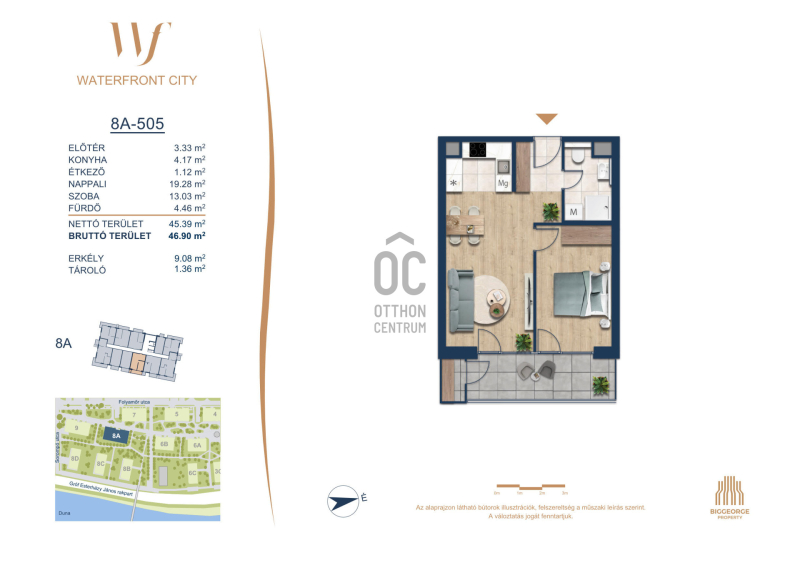 A Waterfront City egy új, modern városnegyed a 3. kerületben, ahol a természet közelsége és a városi kényelem tökéletes egyensúlyban van. A Duna-part közvetlen szomszédságában elhelyezkedő fejlesztés különleges atmoszférát kínál: a sétányt új épületek határolják, üzletekkel, kávézókkal és szolgáltatásokkal, amelyek élhető közösségi teret teremtenek.