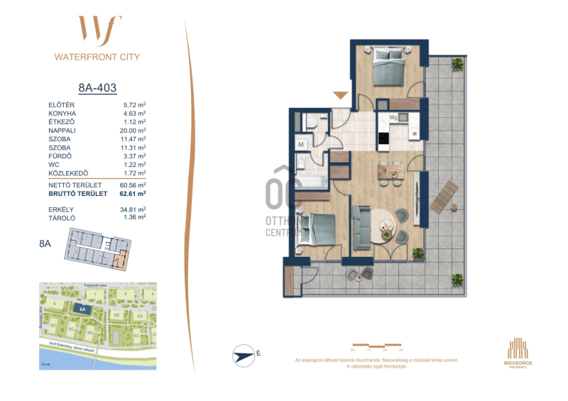 A Waterfront City egy új, modern városnegyed a 3. kerületben, ahol a természet közelsége és a városi kényelem tökéletes egyensúlyban van. A Duna-part közvetlen szomszédságában elhelyezkedő fejlesztés különleges atmoszférát kínál: a sétányt új épületek határolják, üzletekkel, kávézókkal és szolgáltatásokkal, amelyek élhető közösségi teret teremtenek.