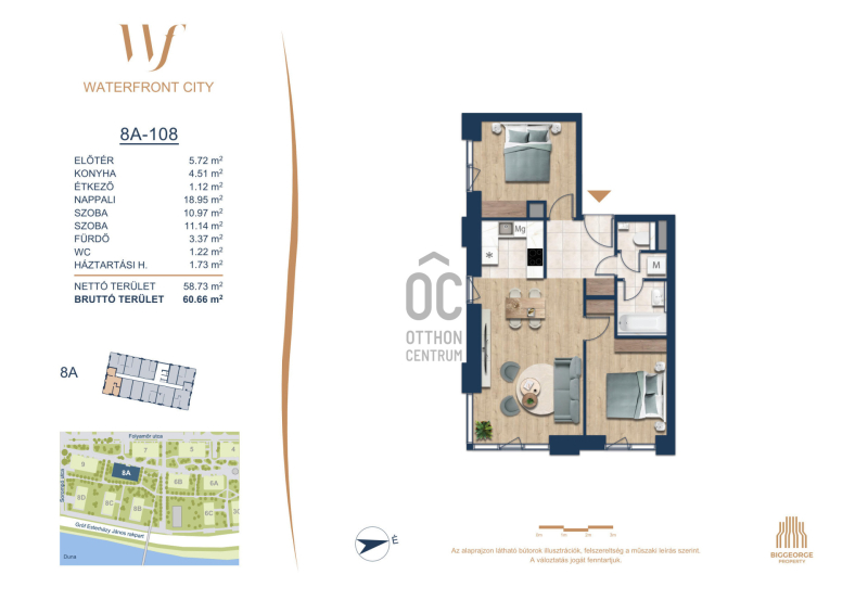 A Waterfront City egy új, modern városnegyed a 3. kerületben, ahol a természet közelsége és a városi kényelem tökéletes egyensúlyban van. A Duna-part közvetlen szomszédságában elhelyezkedő fejlesztés különleges atmoszférát kínál: a sétányt új épületek határolják, üzletekkel, kávézókkal és szolgáltatásokkal, amelyek élhető közösségi teret teremtenek.