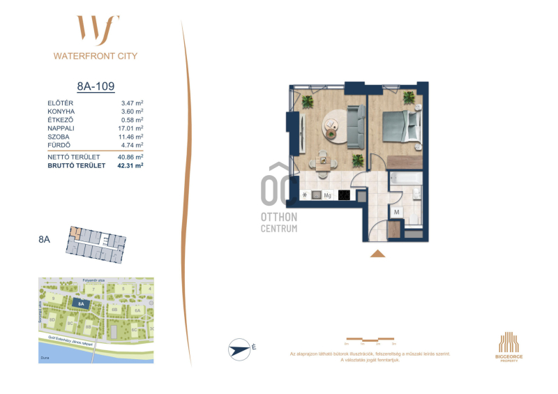 A Waterfront City egy új, modern városnegyed a 3. kerületben, ahol a természet közelsége és a városi kényelem tökéletes egyensúlyban van. A Duna-part közvetlen szomszédságában elhelyezkedő fejlesztés különleges atmoszférát kínál: a sétányt új épületek határolják, üzletekkel, kávézókkal és szolgáltatásokkal, amelyek élhető közösségi teret teremtenek.