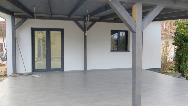 A 30 m²-es fedett terasz ideális helyszíne lehet családi és baráti összejöveteleknek, miközben a 100%-ban közművesített, 570 m²-es telek megfelelő méretet biztosít a kert kialakításához vagy kényelmes udvari élethez. A telken egy garázs is található, az utcafront pedig új, esztétikus kerítést és kaput kapott, ami tovább erősíti az ingatlan rendezett, igényes megjelenését.