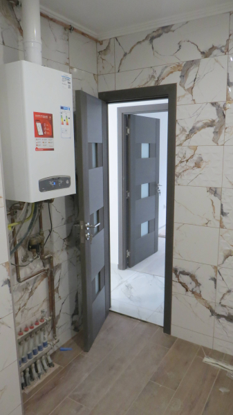 Az ingatlan eredeti szerkezete vasbeton alapra és B30-as blokk téglafalazatra épült, amely a felújítás során komoly műszaki tartalommal egészült ki. A teljes aljzatcsere 10 cm lépésálló szigeteléssel és új teknőszigeteléssel készült, a homlokzat 15 cm szigetelést, a födém pedig 25 cm hőszigetelést kapott, ami a ház energiahatékonyságát jelentősen javítja. A fűtésről és a melegvízellátásról egy vadonatúj, 24 kW-os Ariston gázcirkó gondoskodik, a hőleadás modern padlófűtésen keresztül történik, ami egyenletes és komfortos hőérzetet biztosít minden helyiségben.