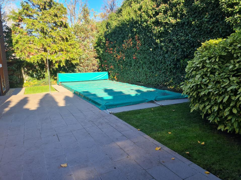 -9 x 4.5-es 1.40 mély vízforgatós fűtött kültéri medence motoros víztakarással,