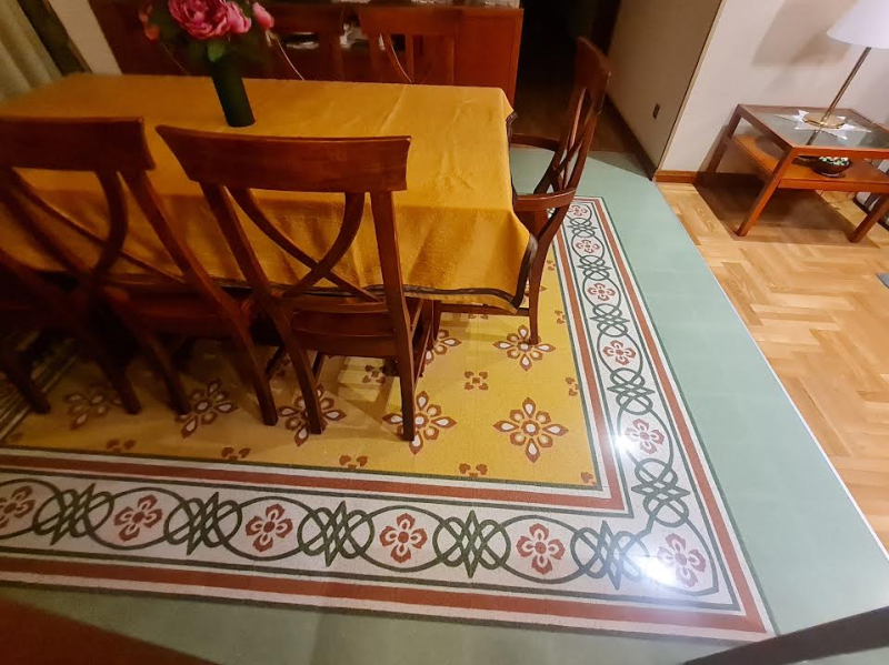 - Terazzo nemes, patinás olasz díszburkolatok a nappaliban, a konyhában, az étkezőben és az előszobában,