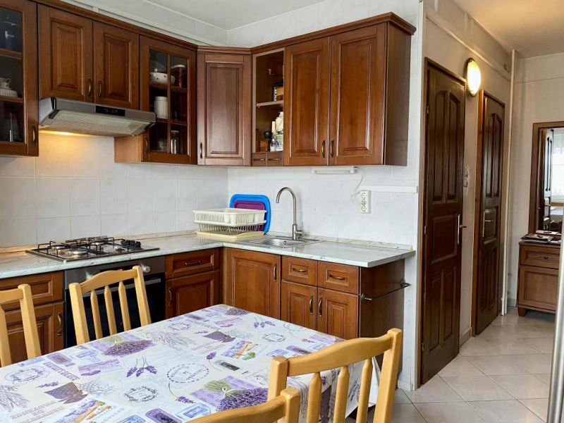 A lakás otthonosságát alapvetően a tömörfa beltéri ajtók, az ezzel harmónizáló beépített konyhabútor adja.