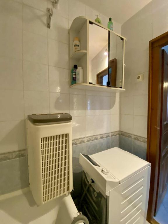 Egy hatalmas tároló is tartozik a lakáshoz (14 nm) a száraz pinceszinten, ahol akár egy műhely is kalakítható, hiszen itt is jó meleg van és az ablakok miatt valamennyi természetes fény is beszűrődik ide.