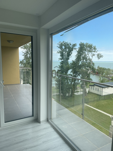 Eladó egy modern, azonnal költözhető, vízparti lakás Siófok legszebb részén, az Ezüstparton – medencés társasházban, 12 m²-es panorámás erkéllyel, felszíni parkolóval, teljes Balaton-élménnyel!