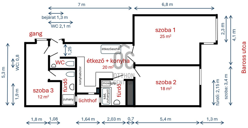 - 3 külön nyíló szoba, 2 fürdőszoba,