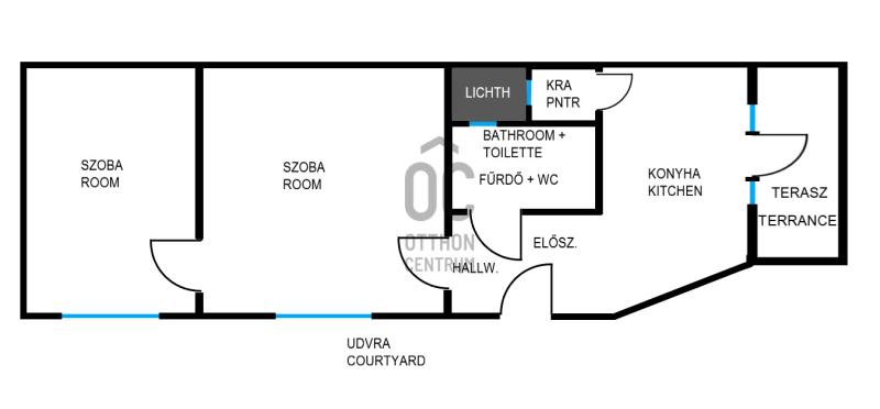 A jelenleg egymásból nyíló két szobás lakás, kis ráfordítással két külön nyíló szobás, plusz amerikai konyhássá alakítható.