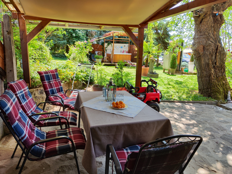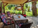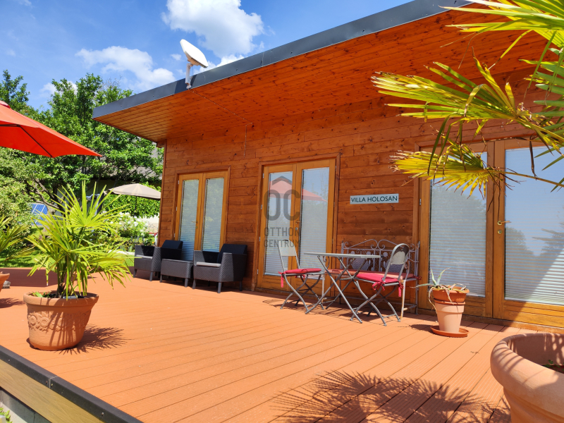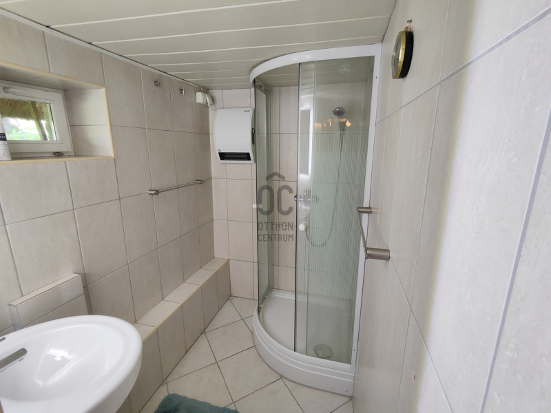 Továbbá az udvarban van egy téliesített nagy teraszos vendégház, melyben szoba-konyha, zuhanyzó/ WC került kialakításra.