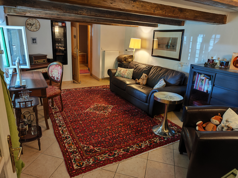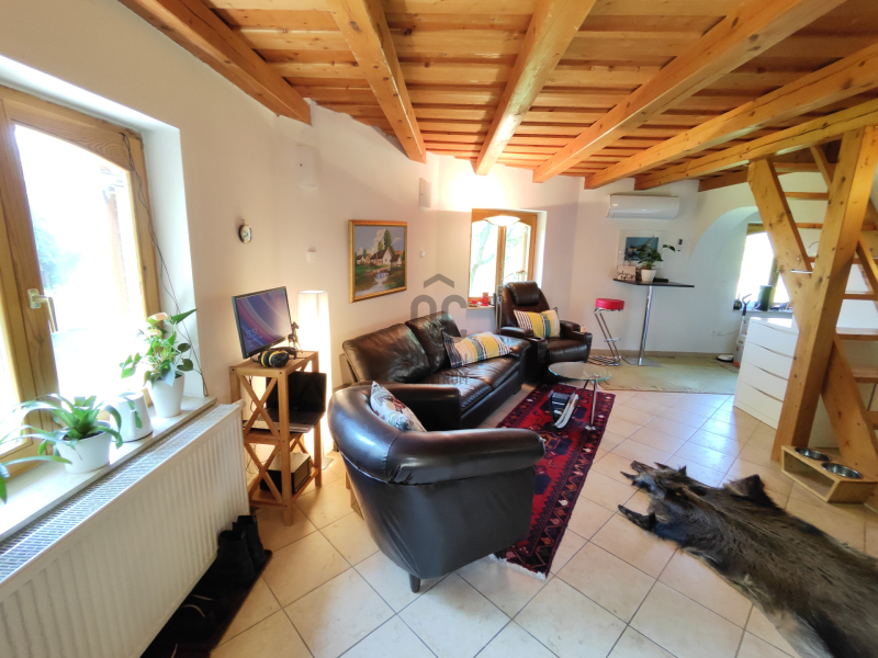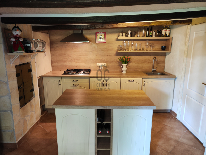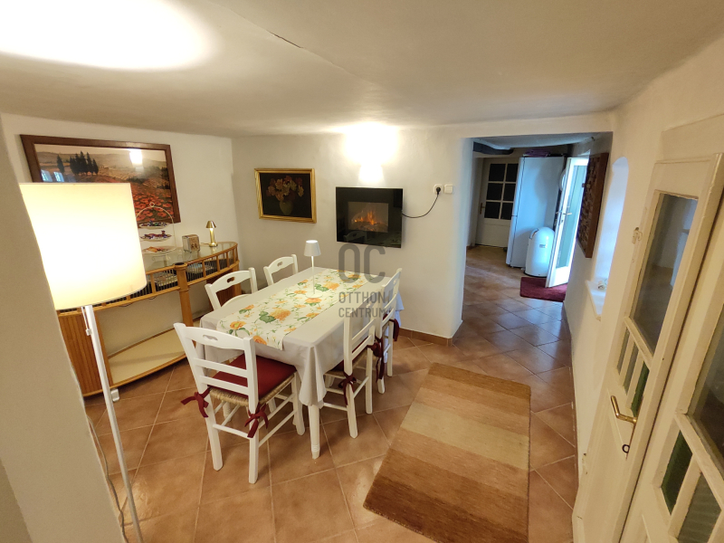 A hátsó ca. 150 éves házrész vastag kő falazatú, a régi idők atmoszféráját hordozza magában. Belmagassága kb. 194cm ahol szoba, étkező, konyha, fürdőszoba, közlekedő, WC, pince kapott helyet, egy 10 m2-es fedett terasz található előtte.