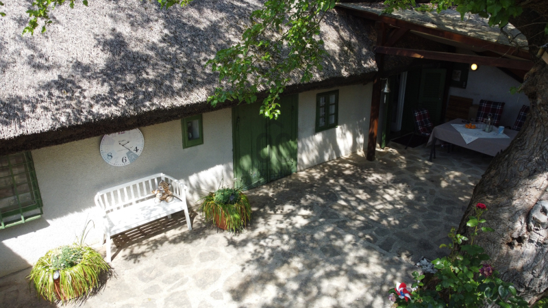 Az udvar teljesen körbe van kerítve, olyan mint egy oázis, reggel a domboldalról, estefelé pedig a Balatontól érkezik a tiszta levegő. Ha relaxálni lenne kedve itt minden adott, a jakuzzival együtt.