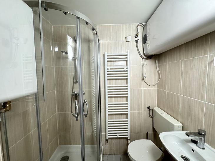 Az ingatlan részben bútorozott: a konyha mosogatógéppel felszerelt, viszont mosógép és hűtő nincs — így a bérlő egyénileg gondoskodhat ezekről. A fürdőszoba zuhanyzós. A belső elrendezés praktikus, ideális akár egyedülállónak vagy párnak.
